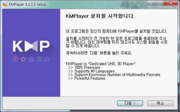 이제 mp4 재생프로그램인 KMPLAY어를 인스톨 하게 되었습니다. 꽁짜로 제공이 되어지면서 성능이엄청 좋은 프로그램인데 안내한 프로그램 다운 받으시고 인스톨 해 주시고 이용해 보시기 바래요. 저는 그럼 그만 마치겠습니다. 행복한 하루 보내보세요.