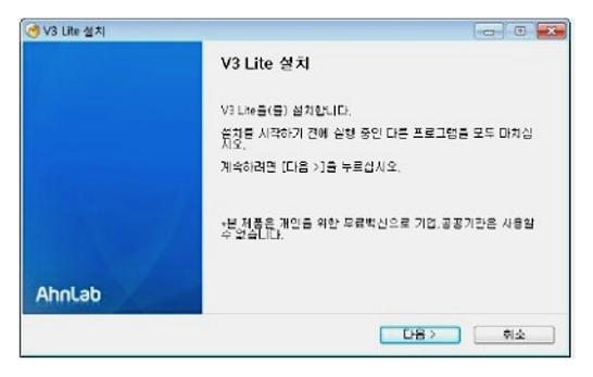 개인과 가정용 컴퓨터라면 V3 lite를 무료로 다운로드하여 사용할 수 있지만, 공공기관이나 회사와 같은 단체에서는 라이선스가 필요합니다. 오늘 방문하신 분들도 V3 lite를 다운로드 받아보시는 것을 권유드립니다.